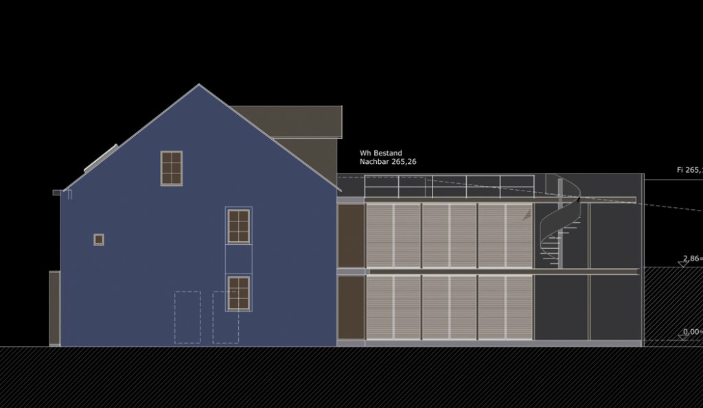 Bei dem Bauvorhaben handelt es sich um die Wiederherstellung und Erweiterung eines Wohnhauses, daß ursprünglich als „Trierer Einhaus“ als Teil einer kleinen Zeile erbaut wurde.