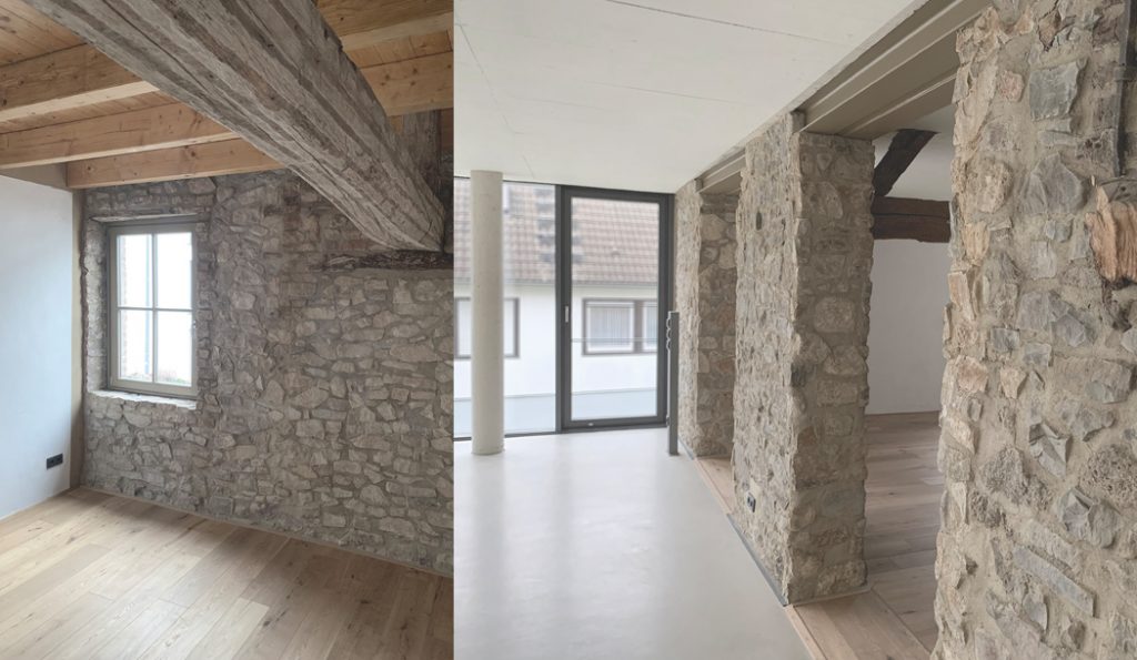 Die Kubatur des historischen Bestandsgebäudes blieb erhalten, die traufseitige Strassenfassade wurde nur unwesentlich verändert. Die ehemalige Grundrissstruktur blieb auch bei dem Ausbau erkennbar.