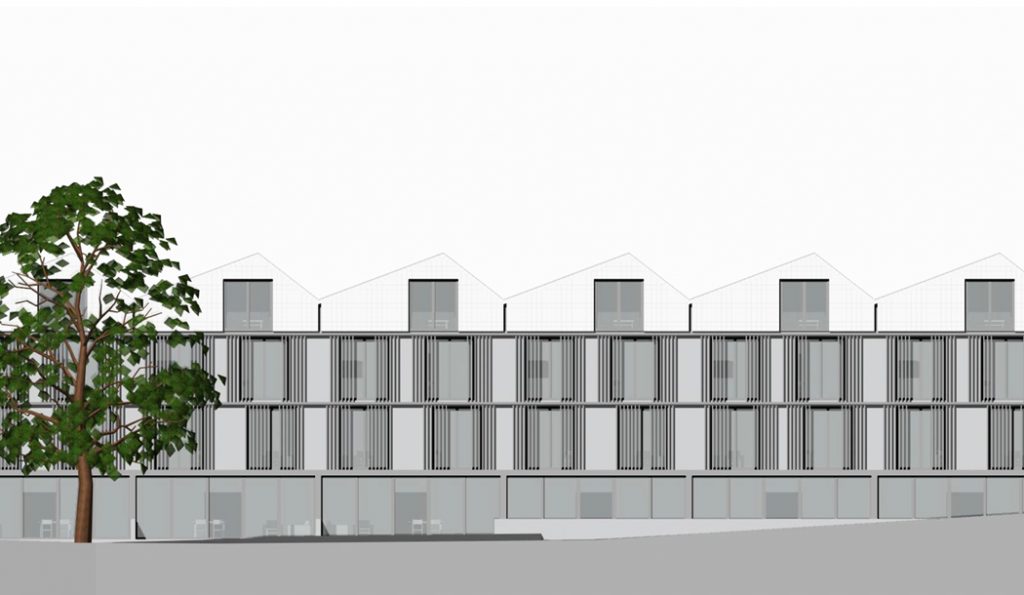 Das Wohnhaus steht unmittelbar an der Schurzelter Straße und schließt im Nordosten die bestehende Straßenflucht. Im Südwesten verbleibt ein Abstand zur anschließenden niedrigen Bebauung der Kita. Das Wohnhaus mit 18 Wohnungen ist ein Holzhybridbau. Es beherbergt im Unter- und Erdgeschoss insgesamt 12 Dreizimmer-Wohnungen, im 1.Obergeschoß und im Dachgeschoß 6 Fünfzimmer-Wohnungen als Maisonette. Jeweils sechs Einheiten liegen auf einer Etage.