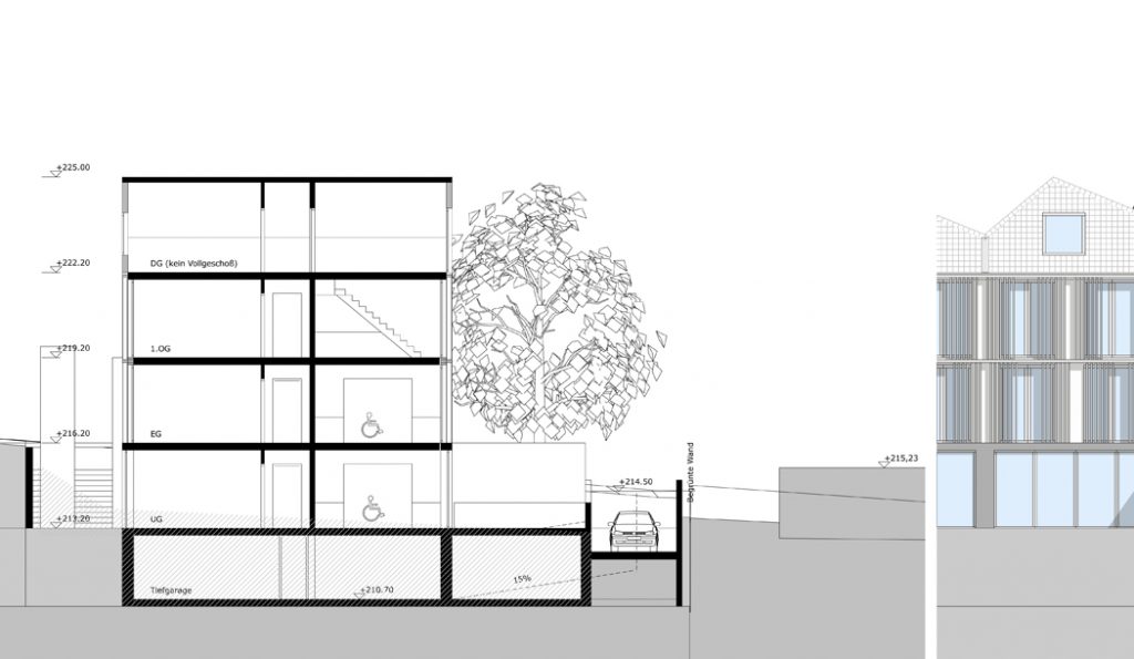 Alle Wohnungen im Untergeschoß und im Erdgeschoß sind mit dem Rollstuhl zu erreichen. Die Wohnungen können walhlweise als „barrierefreie“ ( oder als „rollstuhlgerechte“ Wohnungen ausgeführt werden. Durch bodentiefe Fenster mit einer großzügige Verglasung verfügen alle Wohnungen über zahlreiche Beziehungen zwischen innen und außen. Nach Südwesten ausgerichtet, können die Wohnungen durch schmale, lange Balkone in Richtung Garten ergänzt werden